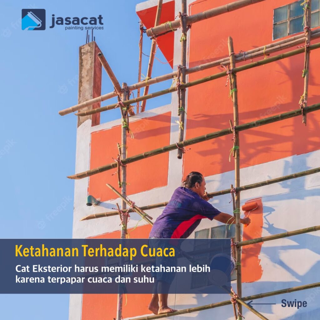 - Cat Eksterior: Dibuat dengan pigmen yang lebih tahan terhadap sinar matahari, sehingga mampu menjaga warna tetap cerah dan tidak memudar meskipun terpapar sinar matahari langsung selama periode waktu yang lama.