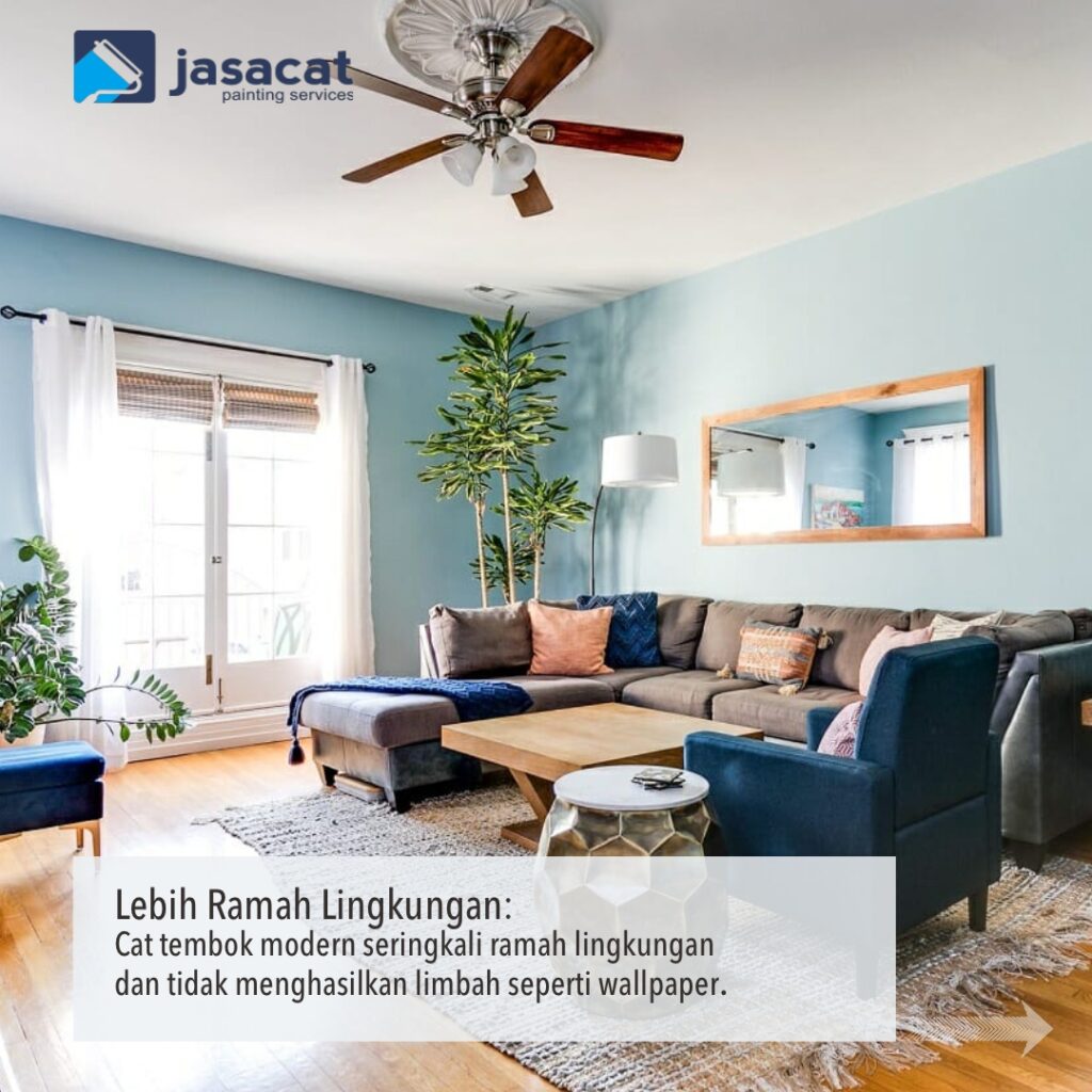 Cat tembok yang berkualitas baik biasanya tidak mengandung bahan berbahaya seperti beberapa jenis wallpaper. Beberapa wallpaper mengandung bahan kimia yang bisa menguap dan berdampak negatif pada kualitas udara dalam rumah. Dengan memilih cat tembok yang ramah lingkungan, Anda dapat memastikan bahwa rumah Anda tetap sehat dan aman untuk seluruh keluarga.