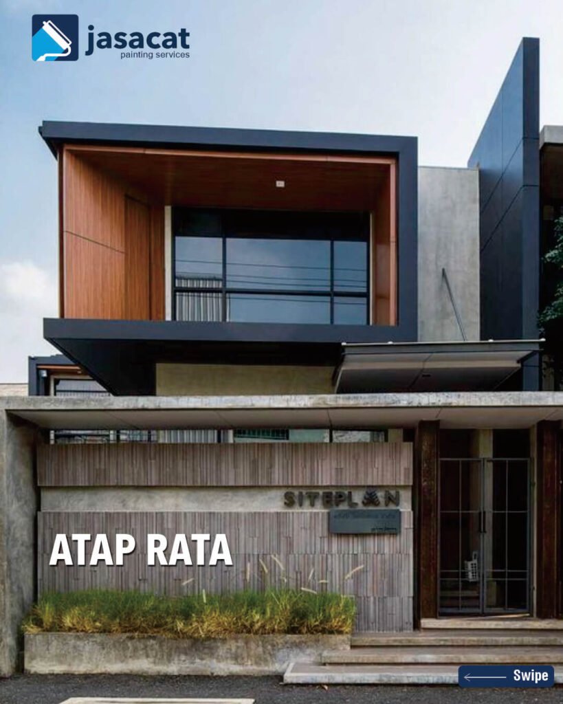 Atap yang rata pada rumah minimalis, tidak bisa dibilang benar-benar rata. Hal ini disebabkan karena lokasi kita di iklim tropis dan mempunyai curah hujan besar. Oleh karena itu, atap senantiasa wajib dirancang dengan kemiringan supaya hujan bisa turun dengan mudah.