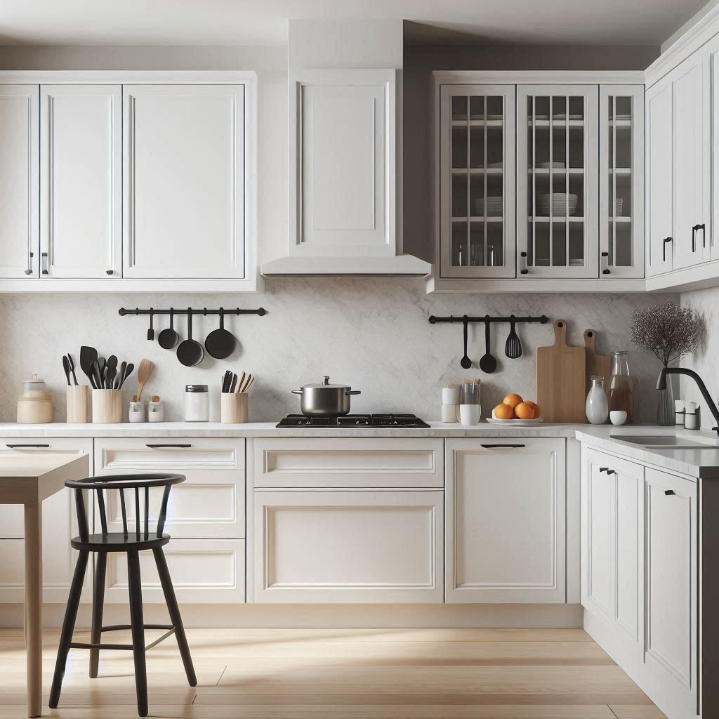 Dapur dengan konsep monokrom akan terlihat lebih bersih dan stylish. Warna putih mendominasi dengan sentuhan hitam atau abu-abu pada backsplash dan countertop akan memberikan kesan modern minimalis. Jika ingin tampil lebih unik, Anda bisa mencoba dapur dengan skema warna beige dan krem yang lembut, membuat suasana memasak lebih nyaman dan menyenangkan.