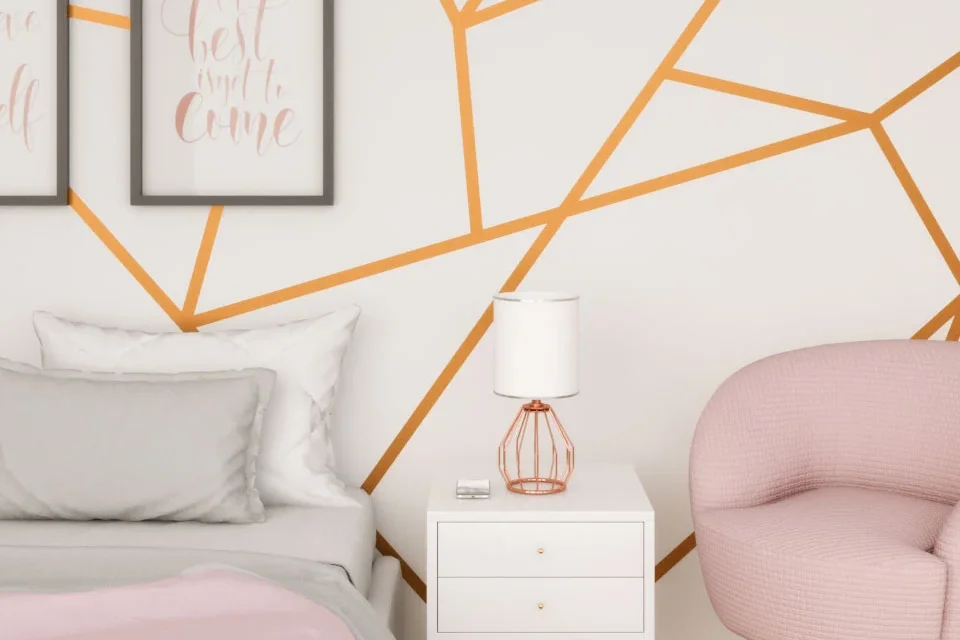 Menciptakan pola geometris yang acak dan kreatif pada dinding akan memberikan tampilan yang unik dan eksentrik. Penggunaan kombinasi warna yang berani akan menambahkan kesan dramatis pada ruangan.