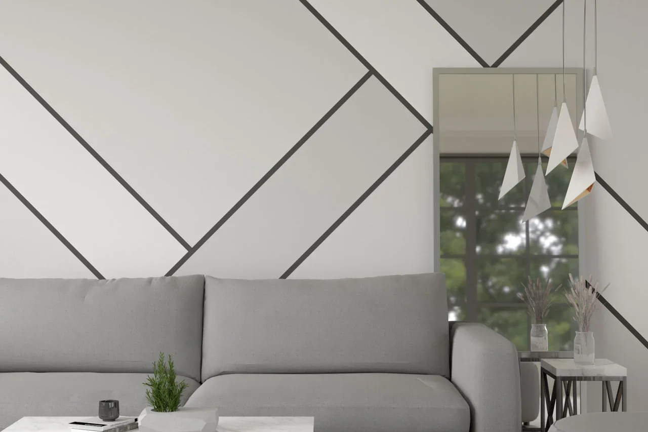 Pengecatan dinding dengan pola garis diagonal akan memberikan tampilan modern dan dinamis pada ruangan. Penggunaan warna-warna kontras akan menambahkan efek visual yang menarik.