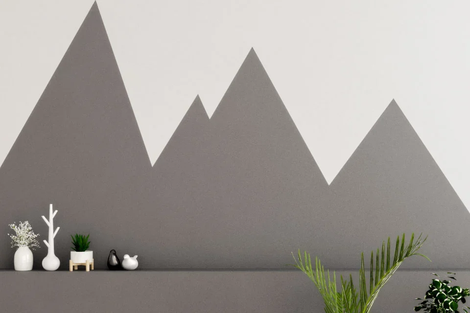 Menciptakan efek gunung pada dinding dengan pola geometris dapat memberikan sentuhan alam yang indah, khususnya dalam gaya dekorasi Skandinavia. Pengecatan dengan gradasi warna yang lembut akan menambahkan dimensi dan kedalaman pada ruangan.