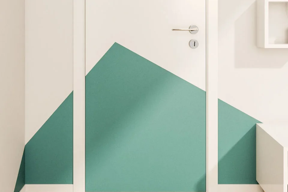 Pengecatan dinding dan pintu dengan pola geometris yang kreatif akan memberikan tampilan yang serasi dan menyatu pada ruangan. Penggunaan pola yang sama pada dinding dan pintu akan menciptakan kesan yang harmonis dan estetis.