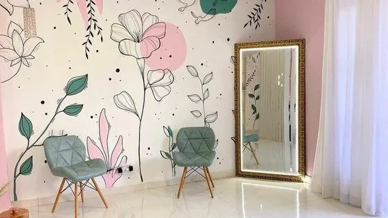 Gunakan motif bunga yang elegan sebagai inspirasi pengecatan dinding. Warna-warna seperti lavender dan dusty rose dapat memberikan nuansa feminin dan anggun.