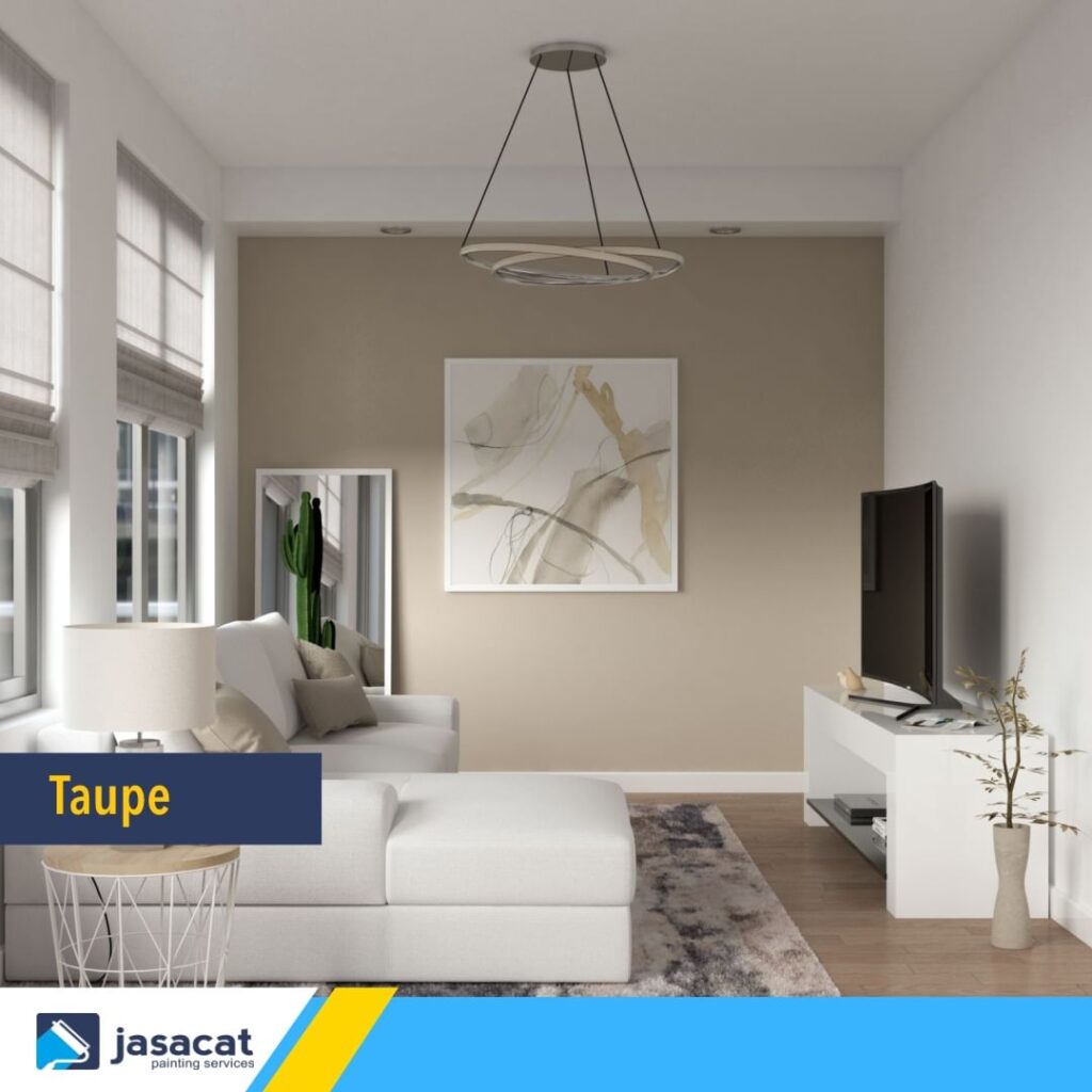 Taupe adalah warna netral yang elegan dan serbaguna. Warna ini cocok untuk berbagai gaya dekorasi ruang keluarga. Anda bisa menggunakan taupe sebagai dinding aksen dan mengkombinasikannya dengan furnitur berwarna kontras untuk menciptakan tampilan yang menarik.