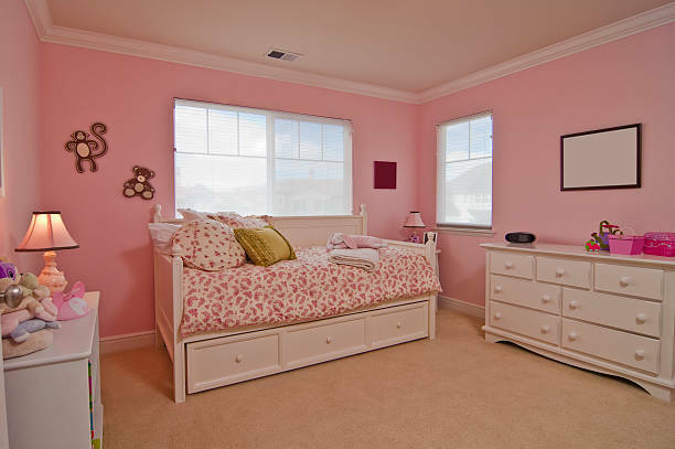 Anda bisa menggunakan cat kamar berwarna pink pastel dan kombinasi perabotan yang berwarna putih-pink. Untuk menampilkan kesegaran kamar, maka Anda bisa menambahkan beberapa tanaman hias pada sudut-sudut kamar. Selain itu, Anda juga bisa menambahkan karpet bermotif untuk mempermanis tampilan kamar.