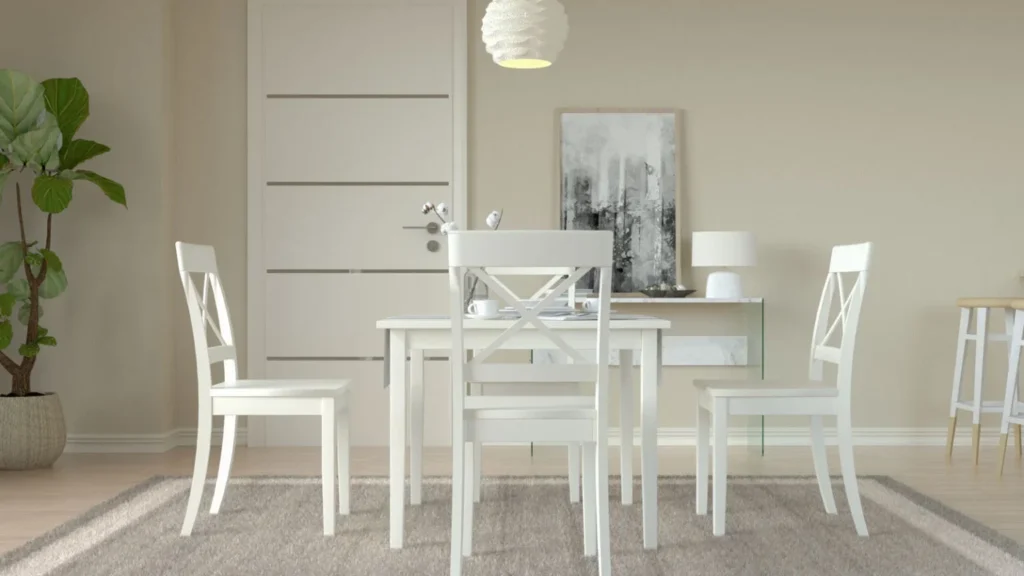 Warna putih tidak hanya cocok untuk ruangan utama seperti ruang tamu, tetapi juga sangat sesuai untuk kamar tidur dan dapur, memberikan sentuhan kesederhanaan dan kebersihan.