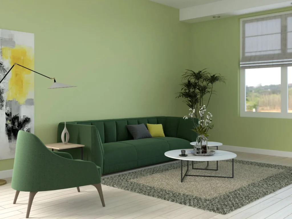 Dengan inspirasi warna cat minimalis untuk interior rumah modern seperti hijau zaitun, Anda dapat menghadirkan suasana segar yang membantu menciptakan lingkungan yang menenangkan dan lebih fokus.