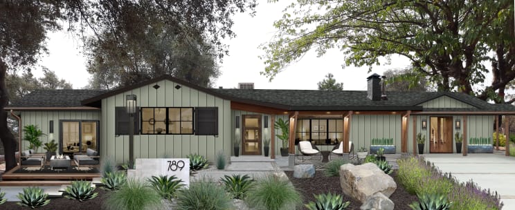 Tone warna hijau ini dapat memancarkan perasaan menenangkan bagi penghuninya. Sebagai tambahan warna, Anda dapat mengombinasikannya dengan warna beige pada pondasi atau tiang rumah.