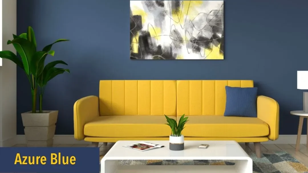 Azure blue membawa kesan ketenangan dan kesejukan, mirip dengan warna langit cerah atau lautan yang tenang. Warna ini cocok digunakan pada dinding atau elemen utama ruangan, memberikan fokus pada area tersebut.