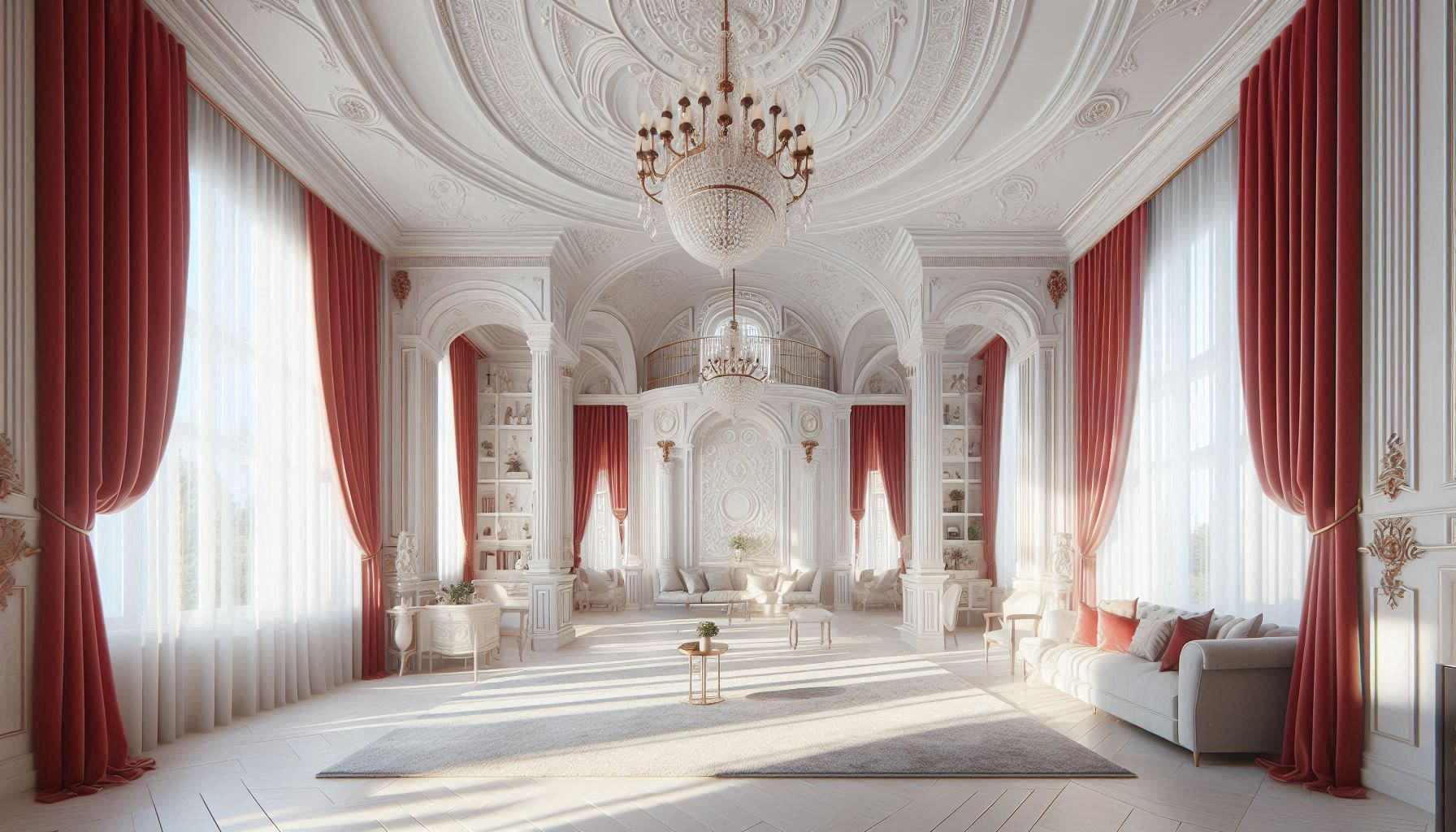 Menciptakan interior rumah yang segar dan elegan juga bisa dengan menggunakan gorden merah dan dinding warna putih. Kedua warna tersebut menghasilkan kontras yang mewah, modern, dan elegan.