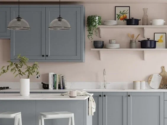 Dapur bukan hanya tempat untuk memasak, tetapi juga menjadi pusat kegiatan keluarga. Perpaduan pink dan light gray dapat diaplikasikan melalui backsplash dapur, peralatan dapur, atau bahkan meja makan. Pilih aksen kayu atau stainless steel untuk memberikan sentuhan kontras yang menarik.
