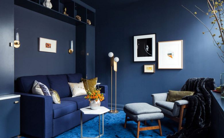 Biru elektrik gelap adalah pilihan modern yang menyegarkan. Ini memberikan kekuatan kontras yang hebat dengan furnitur dan dekorasi berwarna terang, menciptakan nuansa kontemporer yang menarik.
