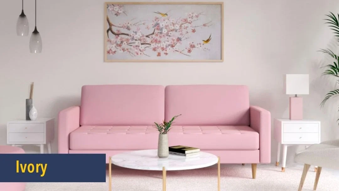 Ivory, dengan nuansa putih yang lembut, memberikan kesan kelembutan dalam kesederhanaan. Warna ini cocok untuk menciptakan ruangan yang hangat dan nyaman. Pilihan ini dapat memberikan fokus pada sofa pink Anda tanpa terlalu mencolok.