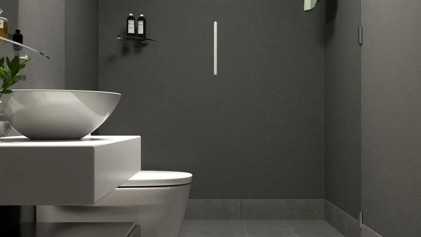 Charcoal, atau arang, adalah warna yang memberikan nuansa mewah dan dramatis. Kombinasikan dengan lantai abu-abu untuk menciptakan kontras yang menarik. Warna ini cocok untuk kamar mandi yang ingin tampil berbeda dan berkelas.