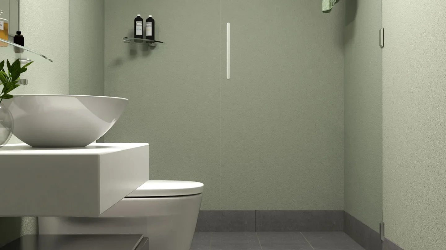 Jika Anda menginginkan sentuhan alam dalam kamar mandi, gray green bisa menjadi pilihan yang tepat. Warna ini memberikan kesan segar dan damai, cocok untuk menciptakan suasana santai di dalam ruangan.
