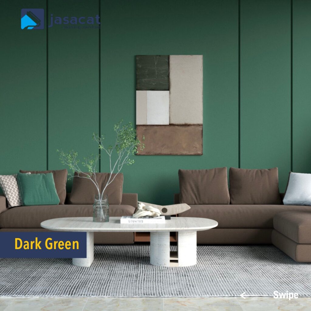Menghadirkan nuansa alam ke dalam ruangan, Dark Green saat dipadukan dengan furniture cokelat menciptakan suasana yang tenang, sejuk, dan menenangkan.