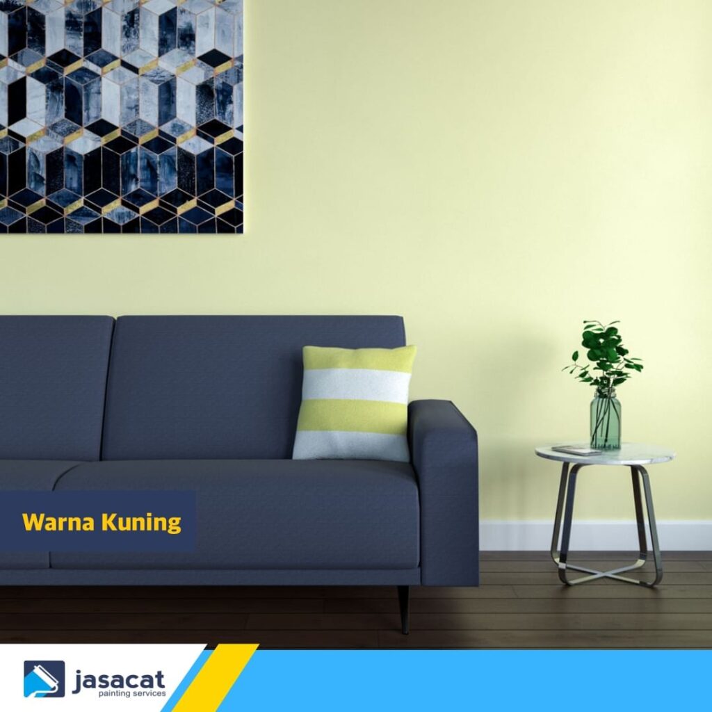 Warna kuning adalah pilihan berani dan ceria. Ini bisa memberikan tampilan yang cerah dan ceria pada ruangan Anda. Pastikan untuk tidak menggunakannya secara berlebihan agar tidak terlalu mencolok.