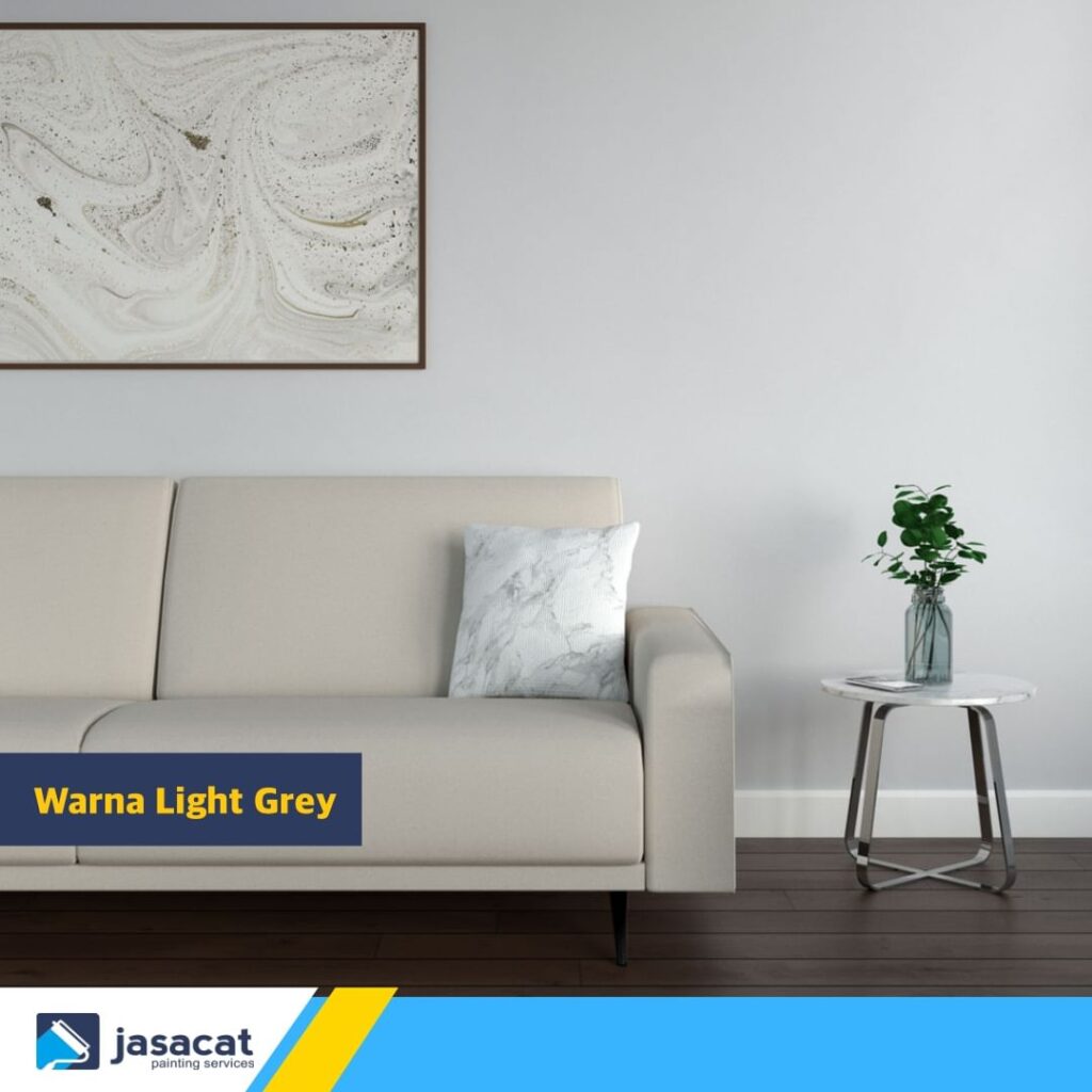 Warna abu-abu terang menciptakan tampilan yang modern dan elegan. Ini adalah pilihan yang baik untuk menciptakan kontras yang indah dengan lantai coklat. Hindari abu-abu yang terlalu gelap untuk menjaga kesan ruangan yang terang.