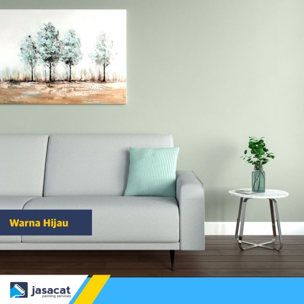 Warna hijau memberikan nuansa segar dan alami pada ruangan. Jika Anda memiliki unsur alam dalam dekorasi, seperti tanaman hias, hijau akan menciptakan kesan yang lebih kuat. Pilih warna hijau yang lembut untuk menciptakan keseimbangan yang indah.