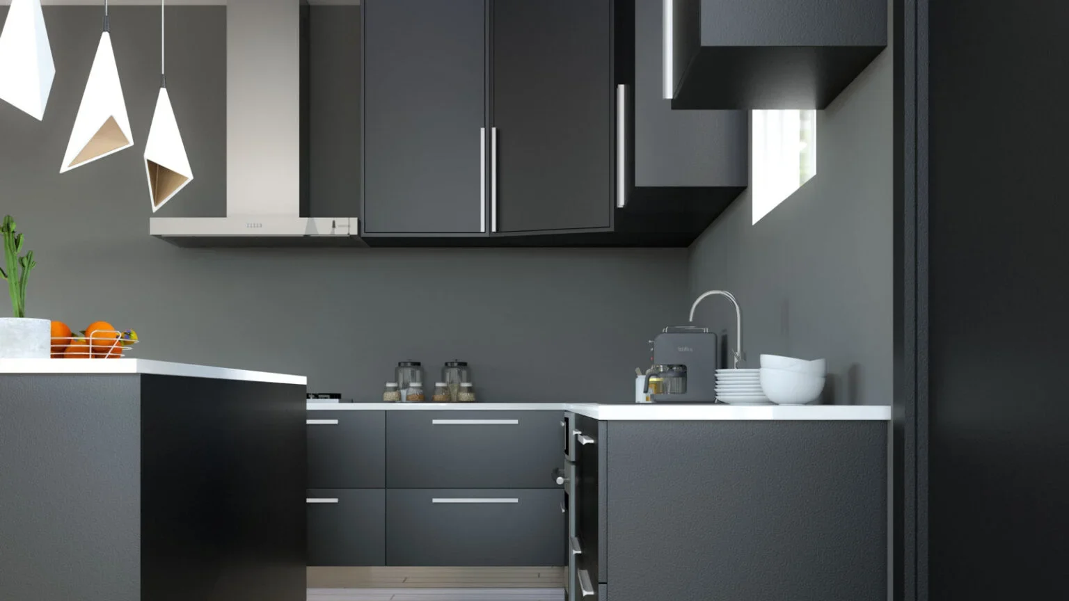 Hitam adalah pilihan yang dramatis dan mewah untuk kabinet dapur Anda. Warna ini akan menciptakan tampilan yang kokoh dan berani dalam ruang dapur Anda, menciptakan kontras yang kuat dengan lantai gelap.