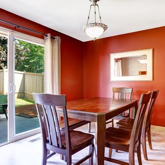 Sama seperti dapur, kombinasi warna maroon dan cream mampu memberikan kesan elegan dan minimalis. Ruang makan Anda akan lebih terlihat mewah sehingga cocok untuk dinner romantis.
