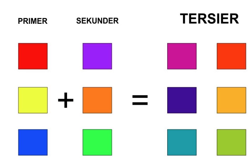 Ini merupakan jenis warna hasil dari perpaduan tiga warna atau bisa juga dikatakan sebagai perpaduan warna primer dan sekunder. Adapun contoh dari warna tersier yaitu: