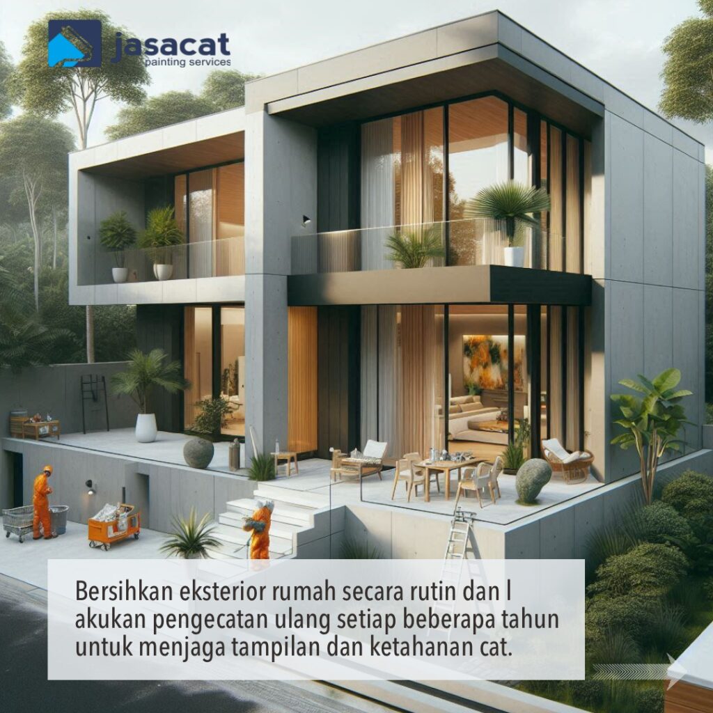 Perawatan rutin sangat penting untuk menjaga tampilan dan ketahanan cat eksterior. Bersihkan eksterior rumah secara rutin untuk menghilangkan debu dan kotoran yang dapat merusak cat. Selain itu, lakukan pengecatan ulang setiap beberapa tahun untuk mempertahankan warna dan melindungi dinding dari kerusakan. Perawatan rutin akan membuat rumah Anda selalu terlihat baru dan terawat.