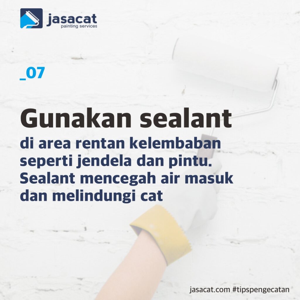 Terapkan sealant di sekitar jendela, pintu, dan area lain yang rentan terhadap kelembaban. Sealant mencegah air masuk dan melindungi cat dari kerusakan. Ini juga membantu mencegah pembentukan jamur dan lumut yang bisa merusak cat dan dinding.