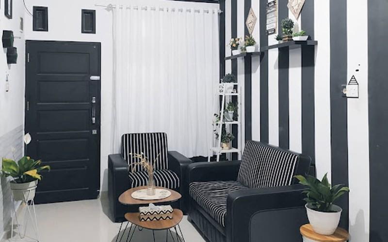 Mengekspresikan selera desain interior unik dan elegan bisa Anda lakukan dengan mengusung konsep monochrome. Warna hitam dan putih ini akan membuat ruang tamu terlihat lebih memiliki karakter. Anda bisa menghadirkan tampilan monochrome seperti garis-garis atau pola lainnya yang menghasilkan kontras hitam putih.