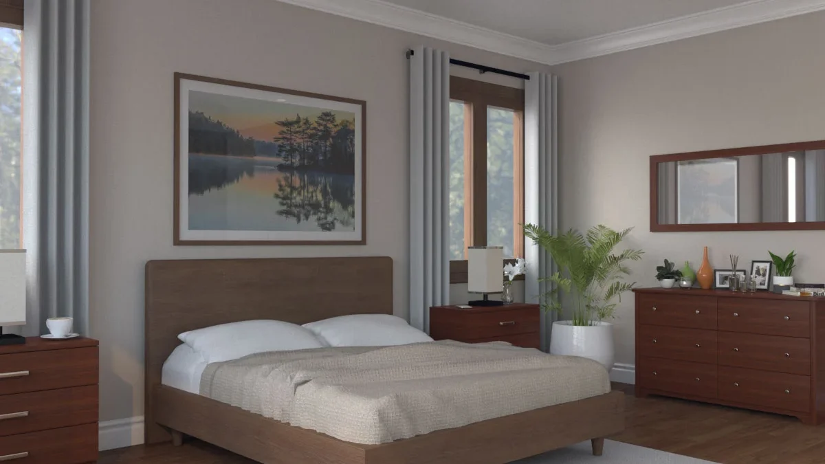 Beige adalah pilihan yang hangat dan netral yang akan memberikan sentuhan kehangatan dan kenyamanan pada kamar tidur Anda. Warna ini akan melengkapi furnitur gelap dengan baik, menciptakan suasana yang santai dan menyambut.