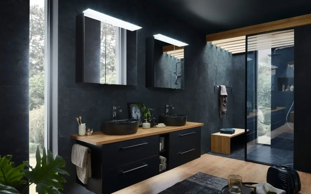 Bagi Anda yang tidak menyukai warna terang, warna hitam juga dapat menjadi pilihan yang menarik. Seperti yang kita tahu, warna ini akan memberi kesan mewah yang tidak berlebihan. Anda dapat memberi sentuhan perabotan berwarna putih untuk membuat kamar mandi lebih hidup.
