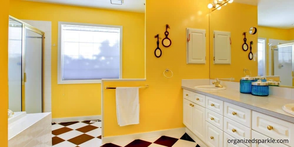 Warna kedua yang dapat Anda jadikan referensi adalah kuning cerah. Ia sangat cocok bagi Anda yang memiliki kamar mandi cukup sempit dan kurang sinar matahari. Memberi ruangan dengan warna ini akan memberi kesan lebih luas dan terang secara bersamaan.