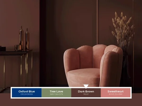 Carob adalah warna cokelat yang jarang digunakan dalam desain interior. Warna ini memiliki nuansa cokelat yang kaya dan hangat. Penggunaan Carob dalam ruangan bisa memberikan kesan yang cozy dan nyaman. Anda bisa memilih untuk mewarnai satu dinding dengan Carob atau menggunakan furnitur berwarna ini sebagai elemen sentral dalam ruangan.