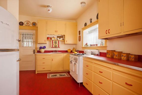 Cat tembok yang cocok untuk keramik merah ketiga adalah kuning. Kedua warna tersebut memang sama-sama warna cerah yang sering dihindari.