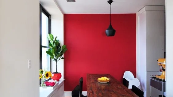 Merah adalah warna yang penuh gairah dan dramatis. Dinding aksen merah dapat menambahkan kehangatan dan keceriaan pada ruangan. Dengan pemilihan furnitur dan dekorasi yang tepat, Anda dapat menciptakan ruang tamu yang memukau atau ruang makan yang memikat dengan warna merah sebagai fokus utama.