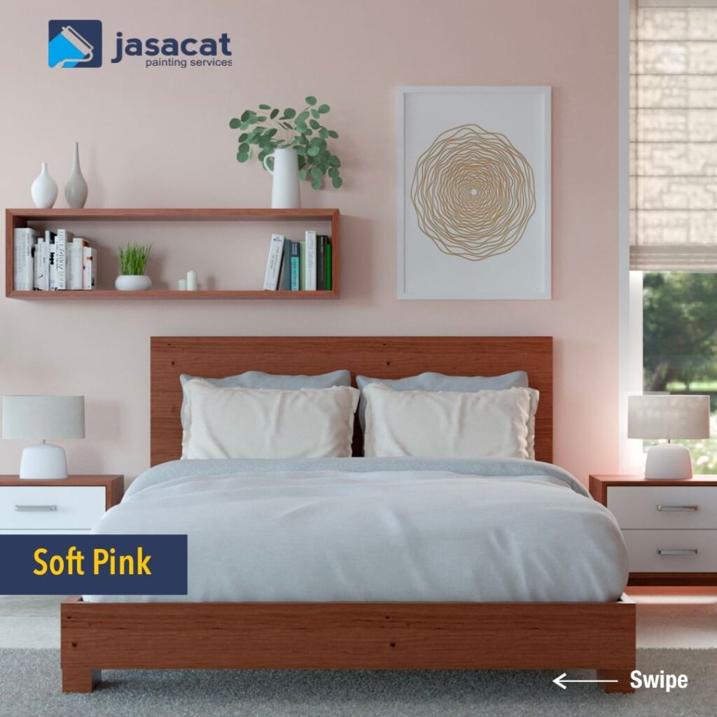 Soft pink memberikan sentuhan feminin dan manis pada kamar tidur. Kombinasi dengan furniture cokelat menciptakan kontrast yang menarik antara kelembutan dan kehangatan. Warna ini cocok untuk menciptakan ruangan yang romantis.