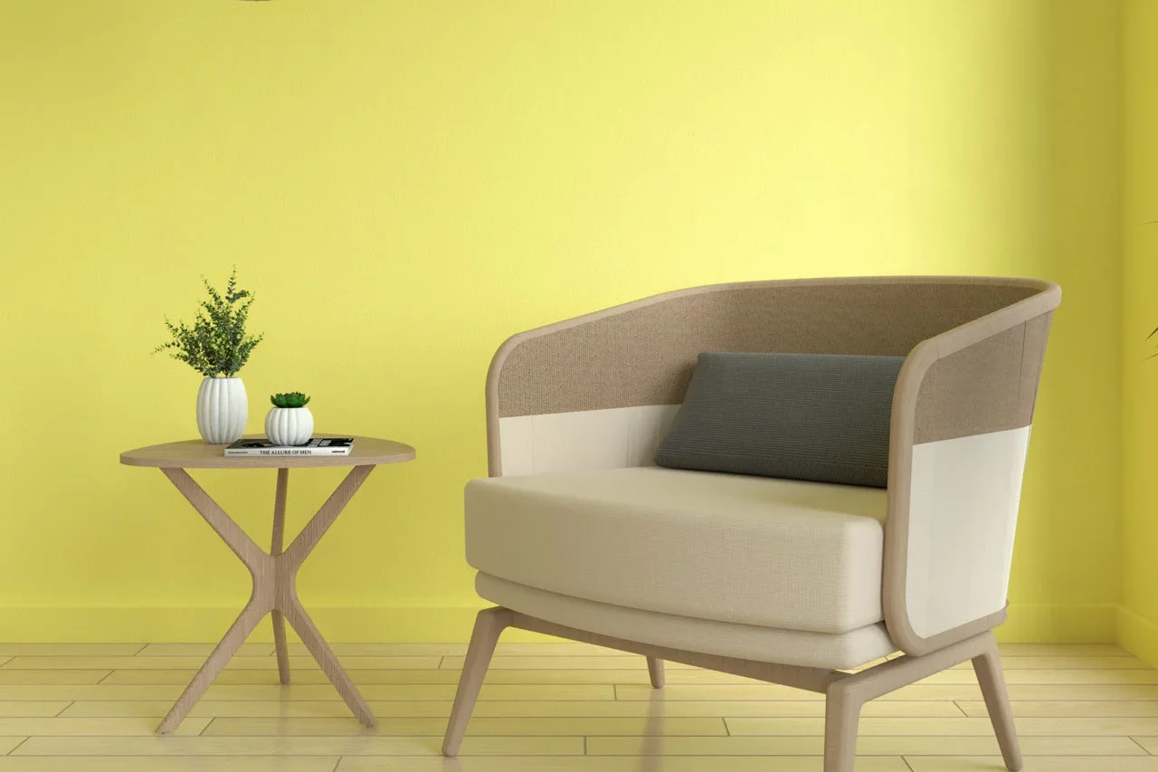 Citrus yellow memberikan sentuhan yang segar dan ceria pada ruangan Anda. Kombinasi dengan lantai kayu akan menciptakan suasana yang cerah dan bersemangat.