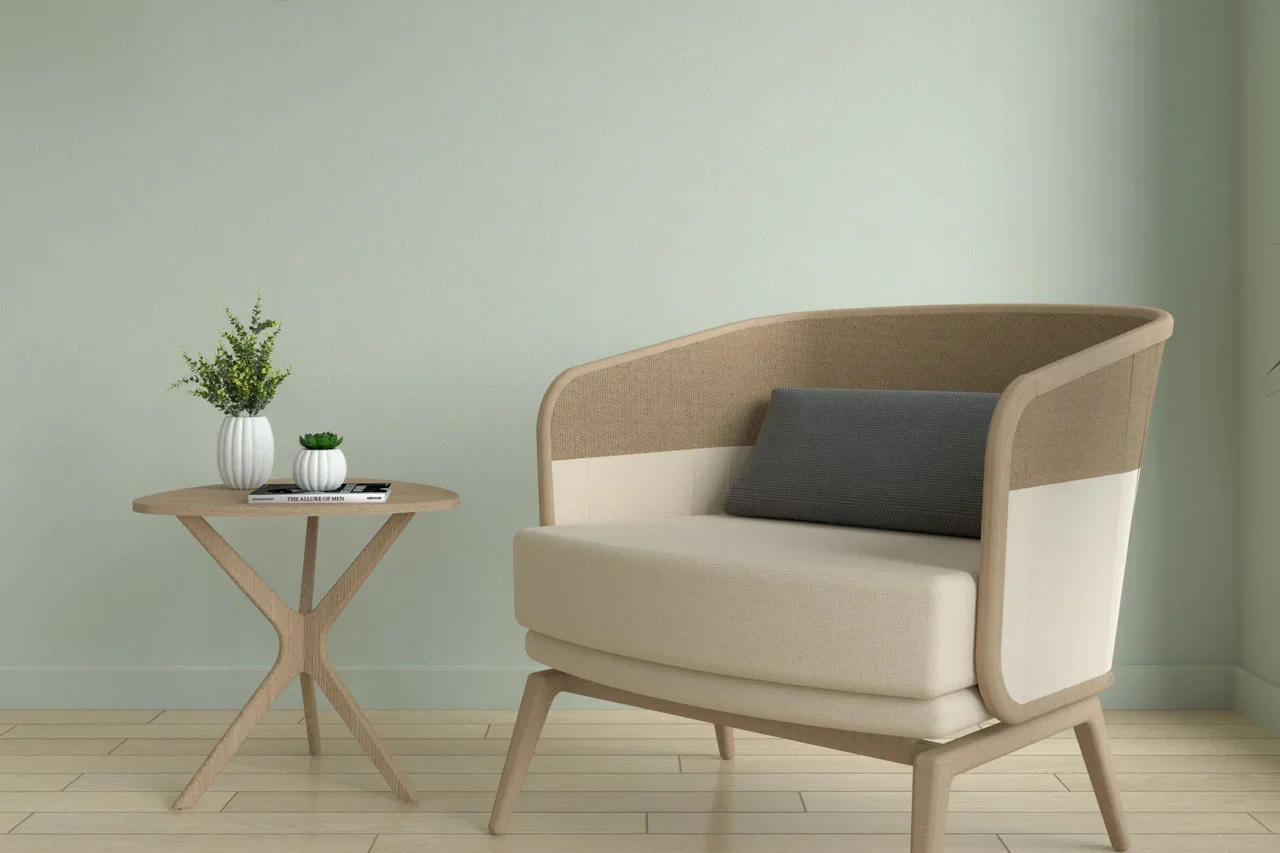 Mint green memberikan tampilan segar dan ceria yang dapat menyegarkan ruangan Anda. Kombinasi dengan lantai kayu akan menciptakan kontras yang menarik dan memperkuat nuansa alam.