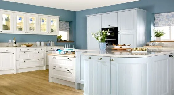 Jika Anda menginginkan nuansa segar dan ceria, warna biru laut bisa menjadi pilihan yang tepat. Warna ini tidak hanya memberikan kesan bersih, tetapi juga menciptakan suasana yang menyenangkan di dapur. Kombinasikan dengan furnitur putih untuk tampilan yang bersih dan energik.